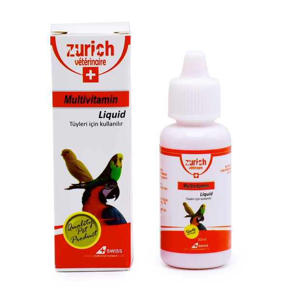 قطره مولتی ویتامین پرندگان حاوی تمامی ویتامین های مورد نیاز پرندگان است ویتامین هایی مانند ویتامین B، ویتامین E،ویتامین C، ویتامین B2، ویتامین B6، ویتامین K3 و ….اسید فوریک و بیوتین .این قطره به بهبود سیستم ایمنی بدن پرنده کمک می کند و آن را تقویت می نماید، قطره ویتامین B زوریخ ساخت کشود ترکیه بوده و برای همه ی پرندگان زینتی مناسب می باشد.
