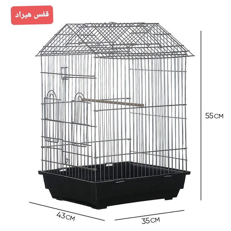 متعلقات همراه قفس: یک عدد توری فضله گیر یک عدد چوب نشیمنگاه دوعدد ظرف آب و دان خوری
